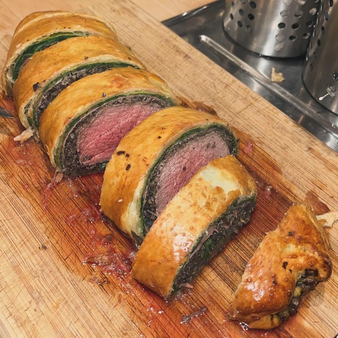 For this meal, I drew inspiration from @samseats on TikTok. I've always wanted to try my hand at a classic dish, so Beef Wellington was the perfect choice. Additionally, I aimed to surprise my family and alleviate some Christmas stress for them. Making this was so much fun, besides the perfect taste which led to every of my family member eating almost three pieces.
