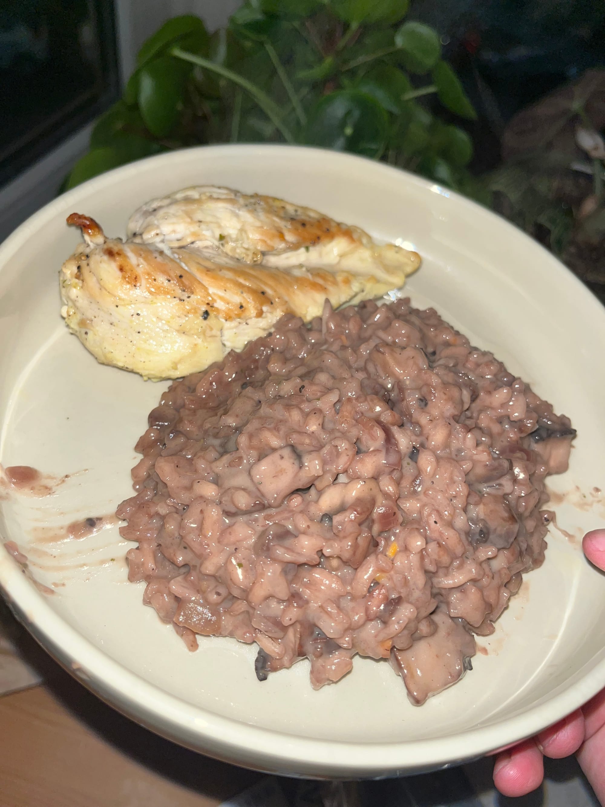 In diesem Fall habe ich das Risotto mit einer Hähnchenbrust zubereitet. Diese kann aber problemlos weggelassen oder ersetzt werden. Beim nächsten Mal würde ich vielleicht noch eine Sauce dazu servieren. Das Gericht, das ihr oben sehen könnt, hat aber auch so hervorragend geschmeckt, da beides sehr saftig war.