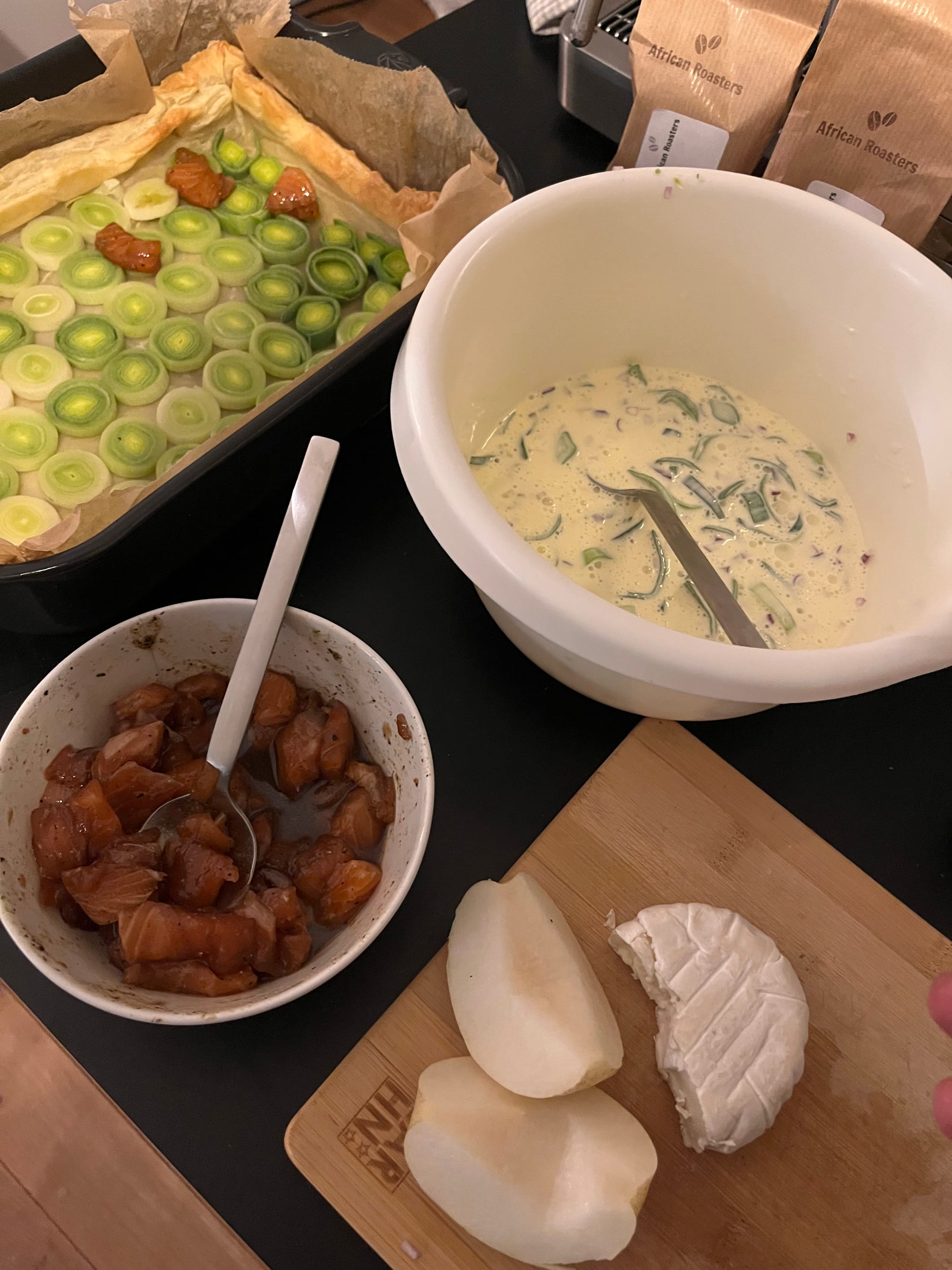 Die Quiche stammt ursprünglich aus Frankreich – genauer gesagt aus dem Nordosten, aus dem Gebiet Lothringen. Die klassische Variante, die Quiche Lorraine, besteht aus Speck, Zwiebeln, Eiern und Sahne. Von dort aus hat sie sich in ganz Europa verbreitet und wurde auf tausend Arten abgewandelt: mit Lauch, Spinat, Tomaten, Fisch, Pilzen, Käse, oder eben – wie in meinem Fall – mit Lachs, Birne und Ziegenkäse.