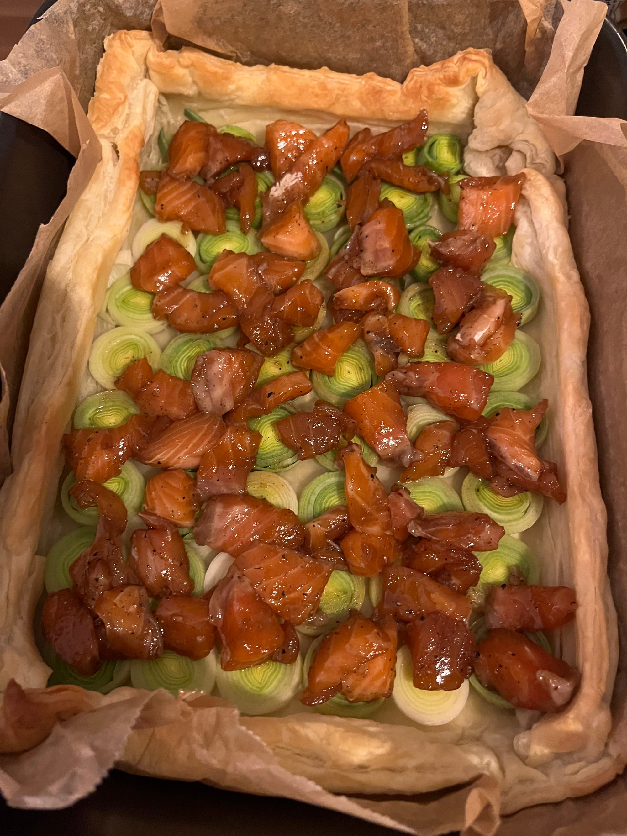 Lachs-Quiche mit Lauch und Birne