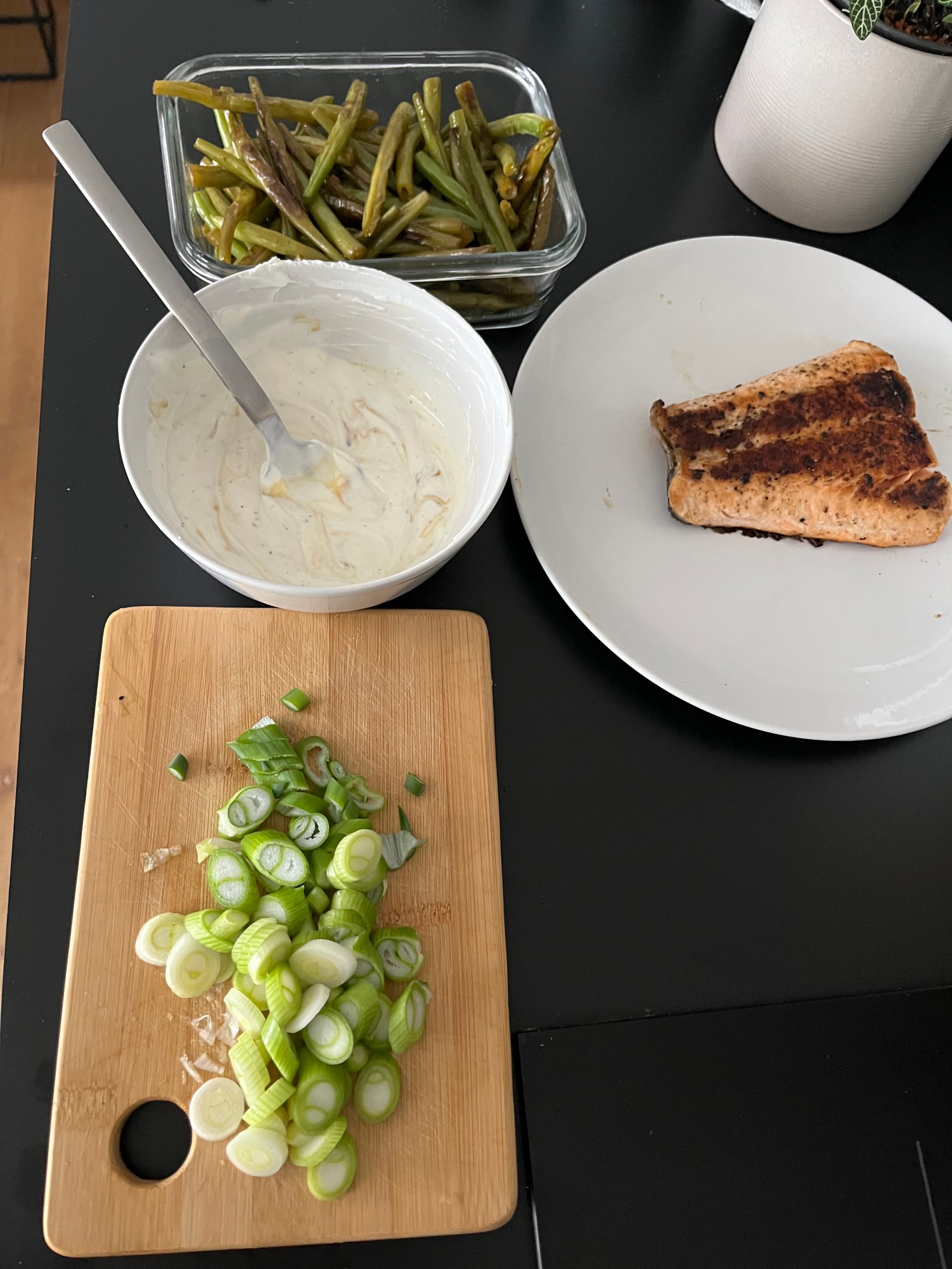 - Anrichten: Süßkartoffeln auf einem Teller verteilen, den Lachs daraufsetzen und mit den Bohnen garnieren. Großzügig mit der Joghurt-Honig-Tahin-Sauce beträufeln und ggf. mit frischem Koriander, Frühlingszwiebeln und/oder Sesam bestreuen.