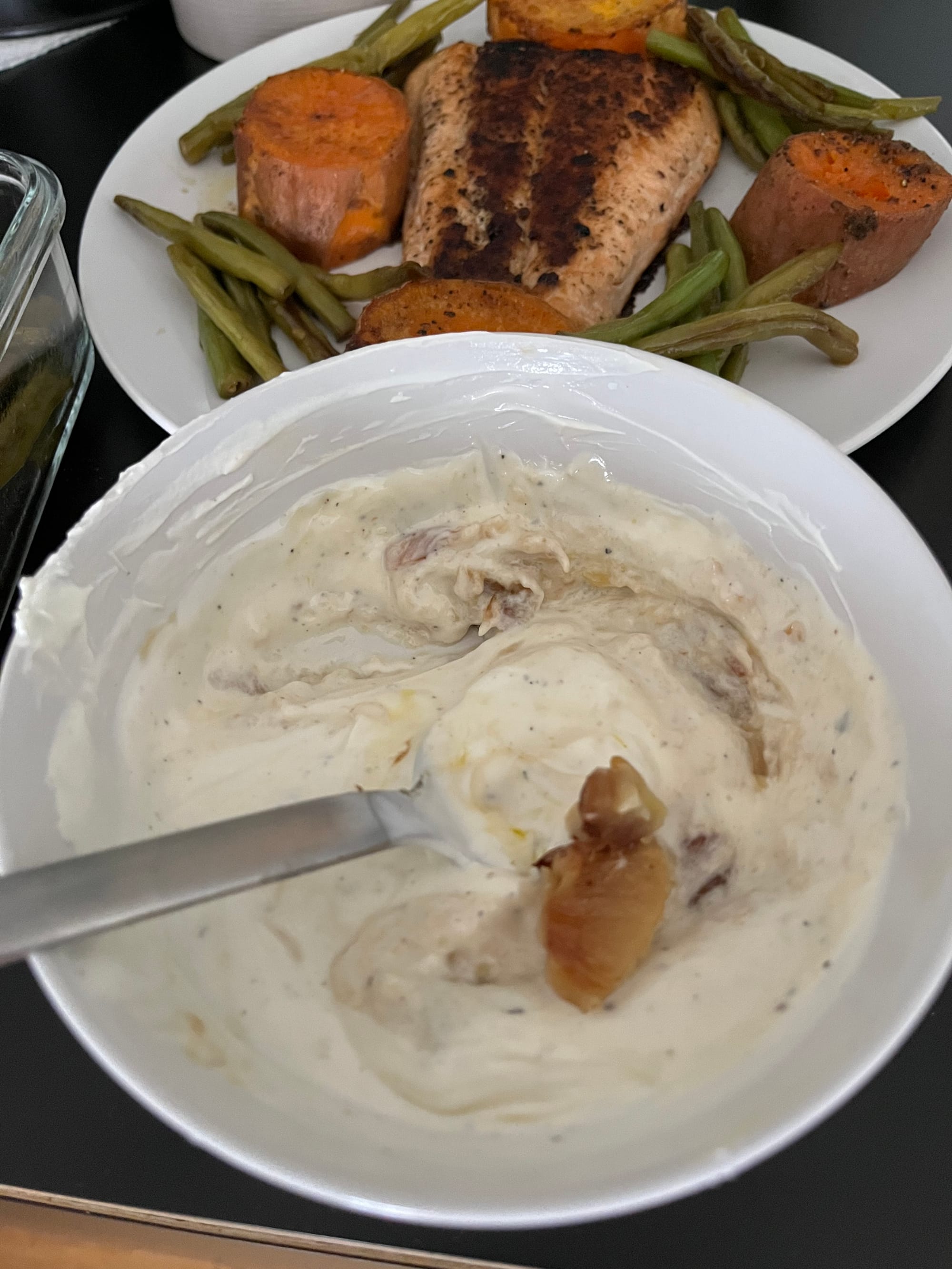 Lachs und Süßkartoffel mit Yoghurt-Honig-Tahin-Sauce
