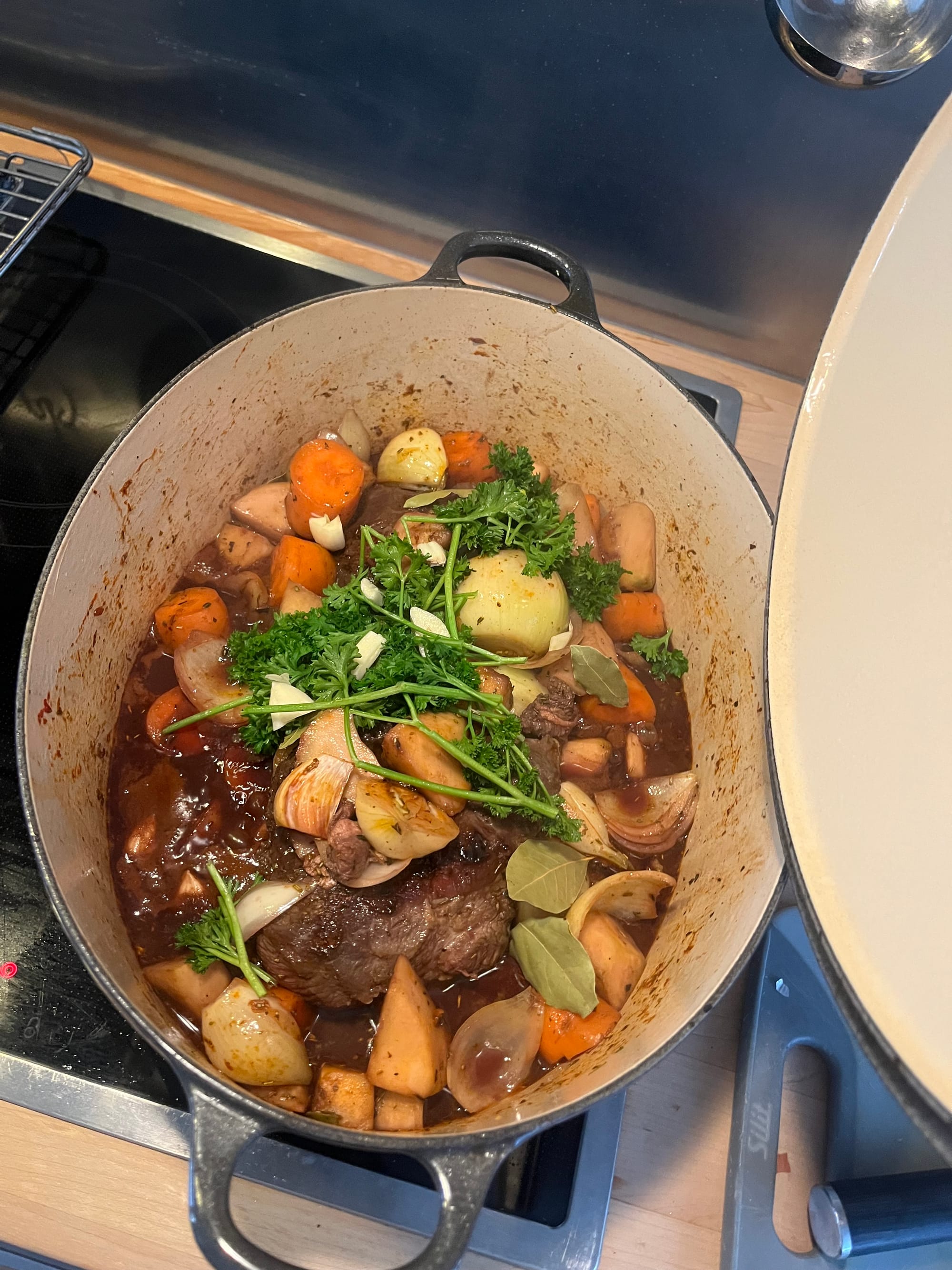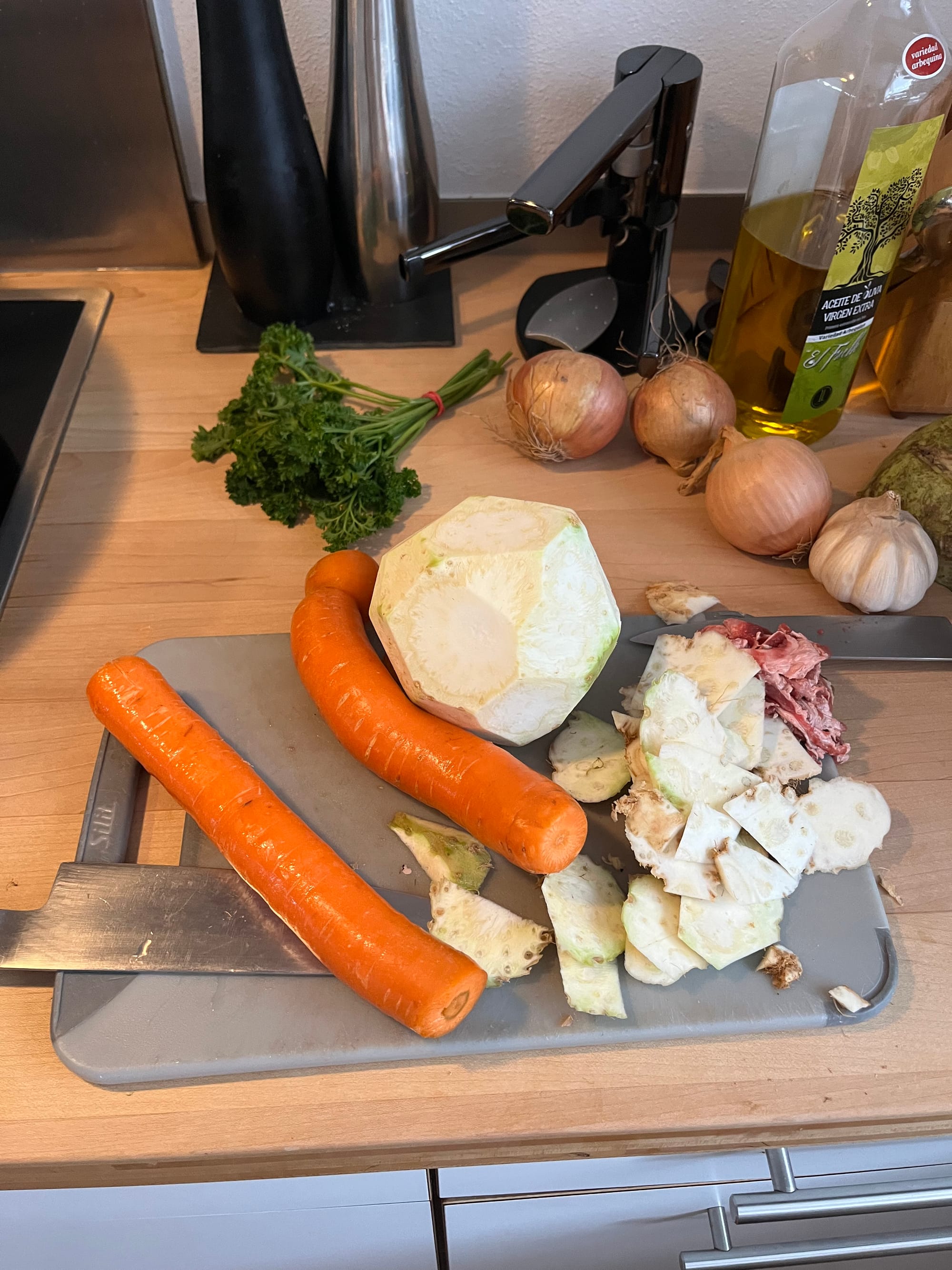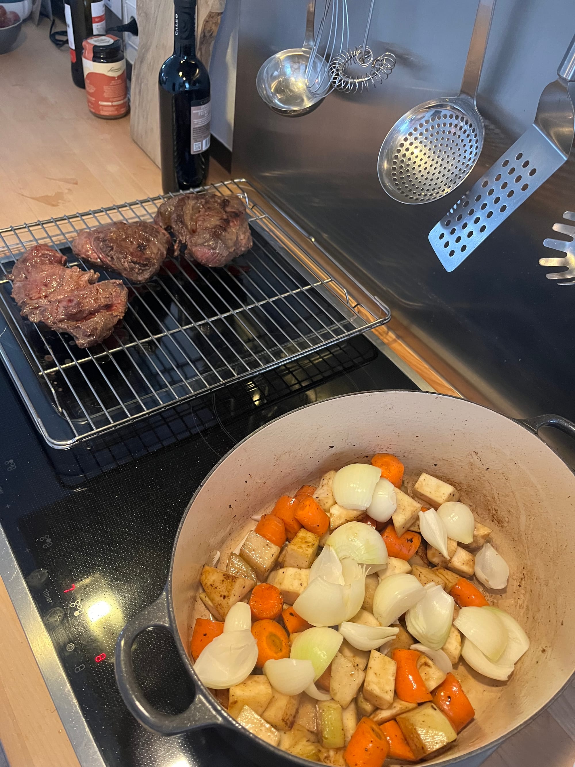 Das finale Rezept stammt von einem deutschen YouTube-Kanal. Ihr werdet schnell fündig, wenn ihr nach Ochsenbäckchen oder Rinderbäckchen auf Selleriepüree sucht – oder ihr folgt einfach den Schritten, die unter meinen Bildern zu finden sind.