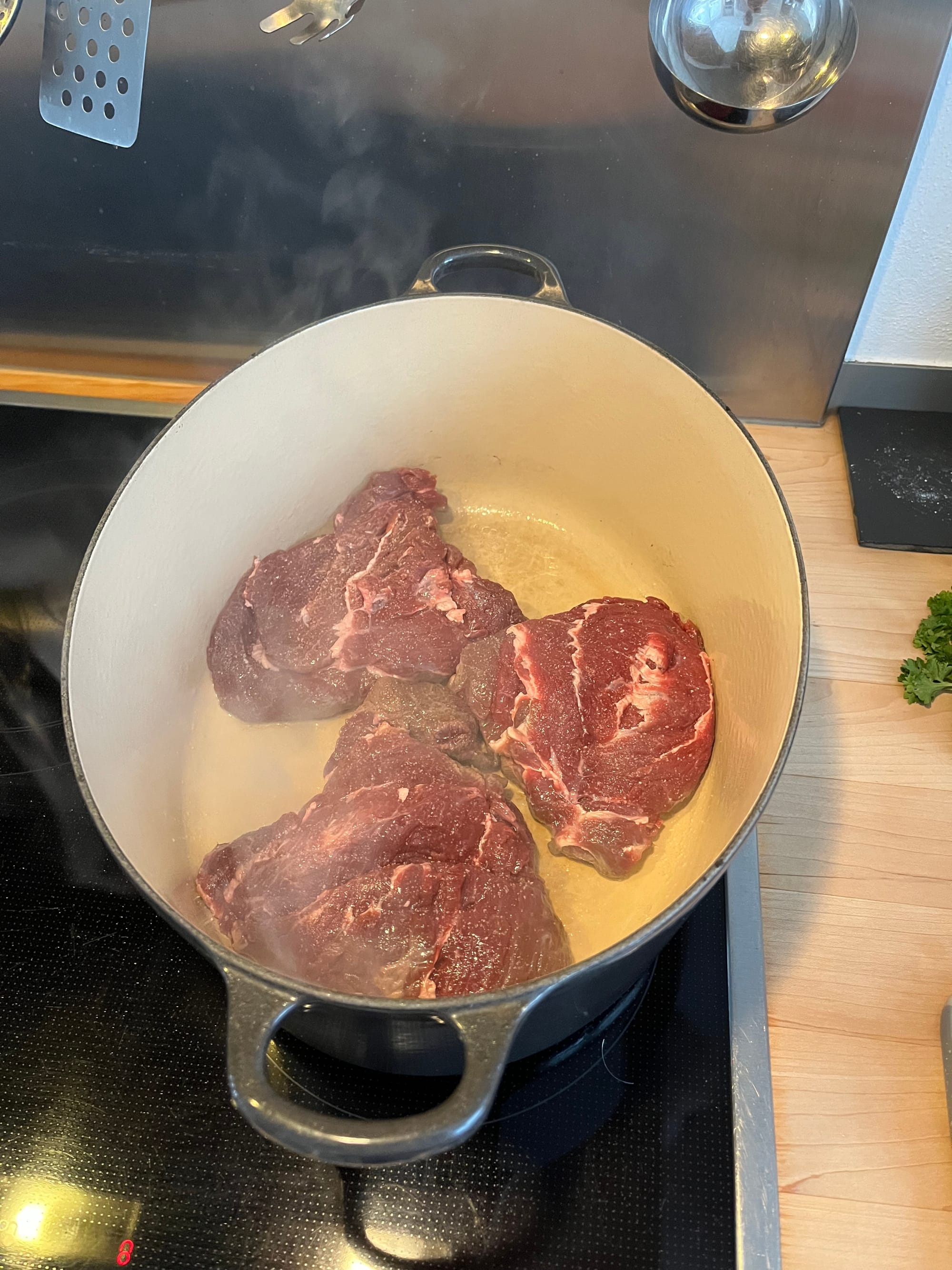 - Rinderbäckchen anbraten: